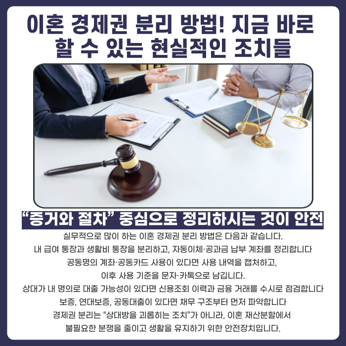 이혼 경제권 분리 방법: 지금 당장 가능한 ‘현실 조치’부터 하셔야 합니다