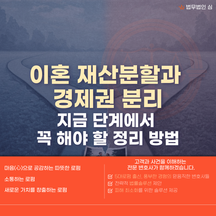 그래서 이혼 과정에서는 감정 정리만큼이나, 경제권을 분리하고 재산 흐름을 고정하는 작업이 중요합니다.