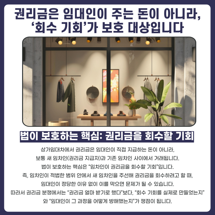 권리금은 임대인이 주는 돈이 아니라, ‘회수 기회’가 보호 대상입니다