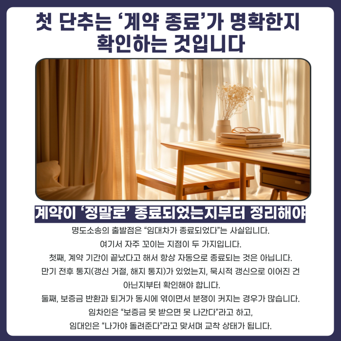 법적으로 종료가 명확하게 정리돼야 퇴거 절차가 힘을 받습니다.