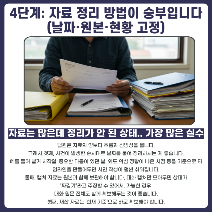 3단계: 위자료·재산분할·양육 관련 증거는 성격이 다릅니다