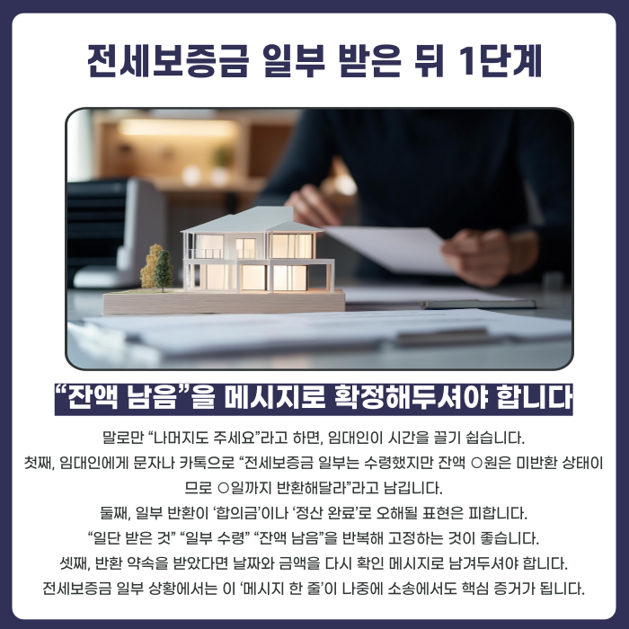전세보증금 일부 받은 뒤 1단계: “잔액 남음”을 메시지로 확정해두셔야 합니다