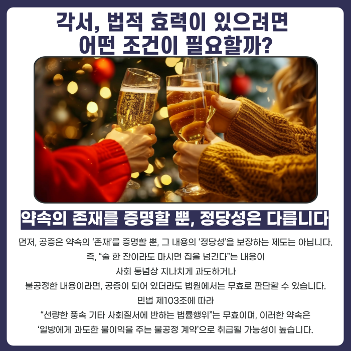 결국, 각서의 효력은 작성 경위·내용·상대방의 의사에 따라 달라집니다.