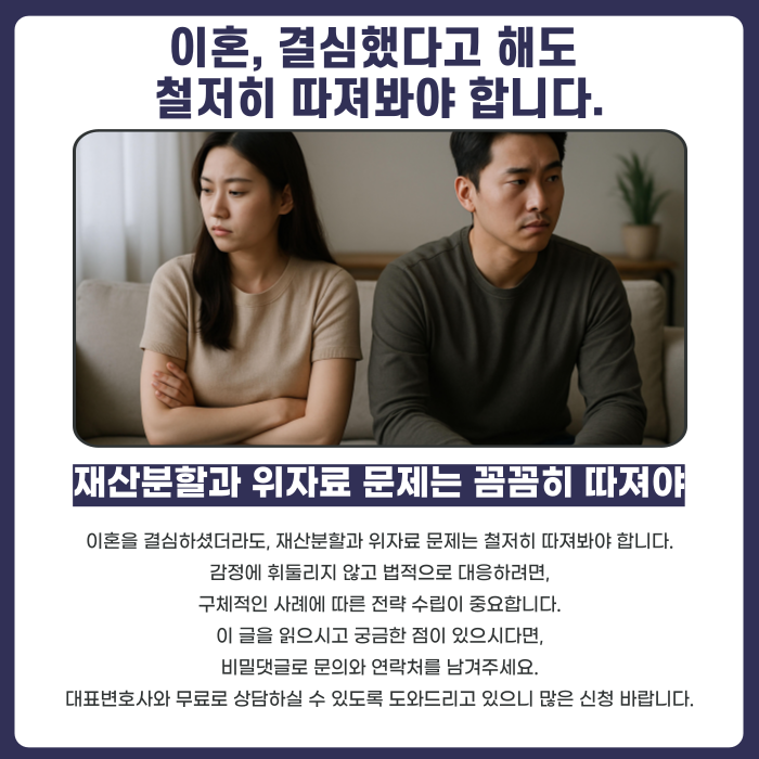 하지만 혼인 관계를 정리하는 것 못지않게 중요한 문제는 바로 재산분할입니다.