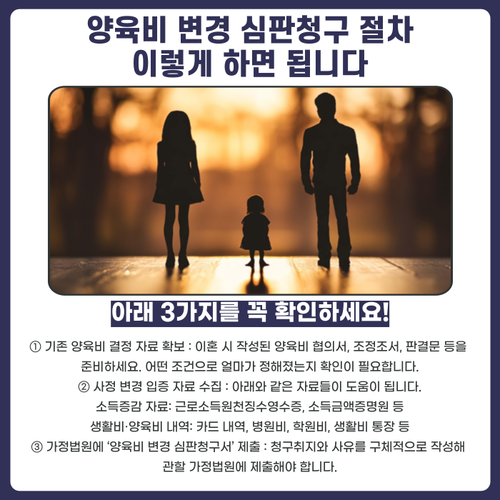 이번 글에서는 양육비 변경 심판청구 절차와 준비서류, 유의사항까지 상세히 정리해드립니다.