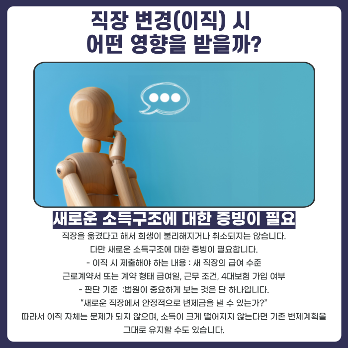 - 이직 → 새 소득 기준으로 변제계획 조정