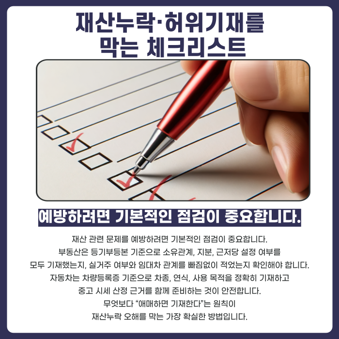재산누락·허위기재를 예방하는 체크리스트