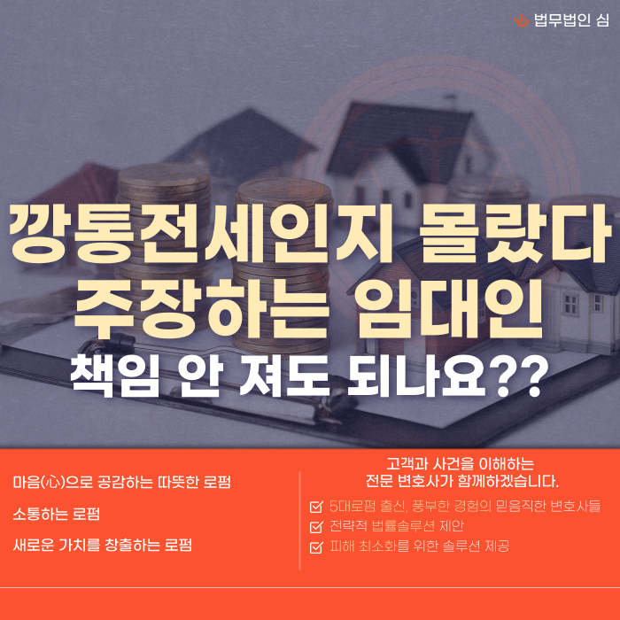 전세보증금을 못 돌려받는 상황에서 임대인이 “깡통전세인지 몰랐다”, “집값이 떨어질 줄 몰랐다”고 주장하는 경우가 많습니다. 하지만 이 말만으로 임대인의 책임이 사라지지는 않습니다. 다만 형사(전세사기 성립)와 민사(보증금 회수)는 판단 기준이 달라서, 지금 상황에 맞는 전략으로 접근하셔야 합니다.