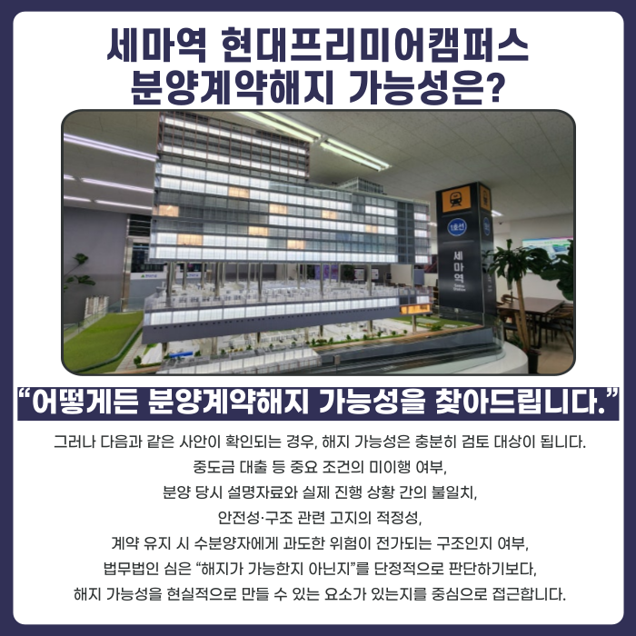 세마역 현대프리미어캠퍼스 분양계약해지, 실제로 가능할까?