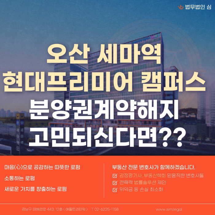 세마역 현대프리미어캠퍼스와 같은 지식산업센터 분양계약해지 사안에 대해