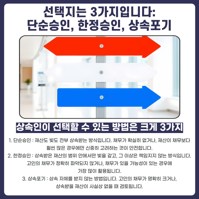 선택지는 3가지입니다: 상속 그대로 받기, 제한해서 받기, 아예 포기하기